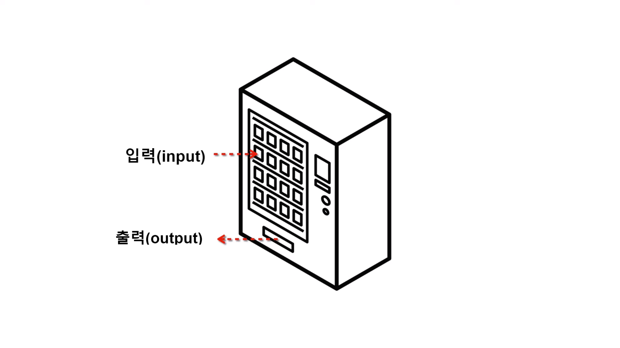 자판기가 그 입력에 대해 해당된느 제품을 제공하는 것은 '출력'이라고 할 수가 있다.