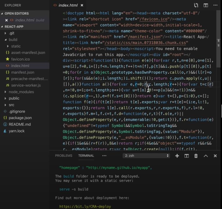 Build 디렉토리에서 index.html로 들어가면 공백이 하나도 없고 읽을 수가 없다.