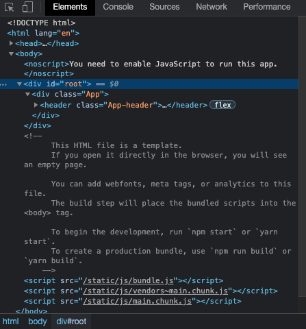 우리가 index.html에서 신경 쓸 부분은 <div id=“root”></div>이다.