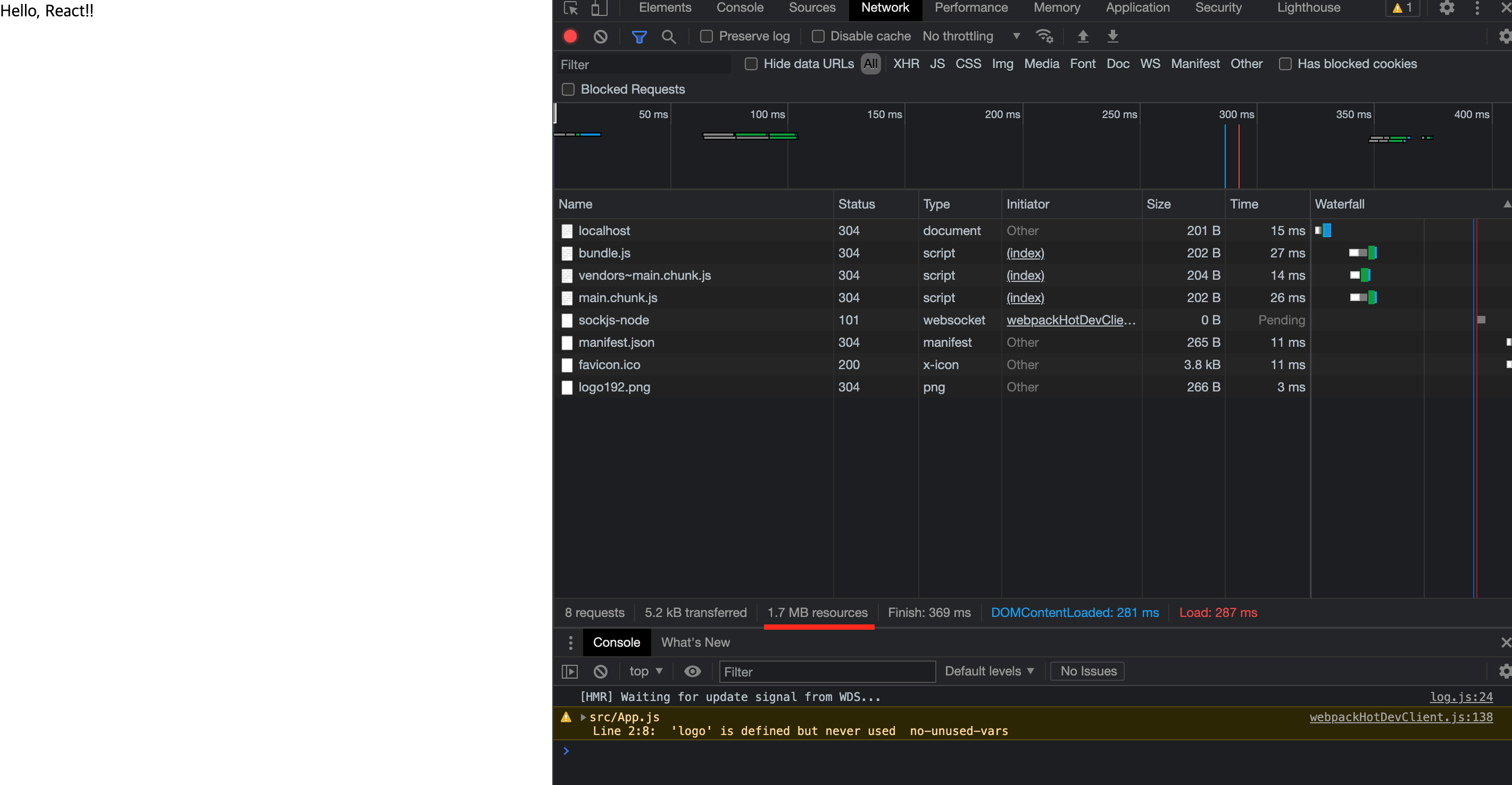 기능이 하나도 없는데 이러는 이유는 리액트가 개발의 편의성을 위해서 여러가지 기능을 지금 추가해 놓은 상태이기 때문이다.