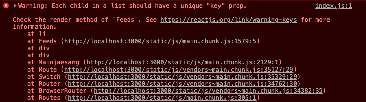 이 에러가 발생하는 이유는 배열 안에 담긴 하나하나의 값이 고유한 키 값을 가지고 있지 않았기 때문이다.