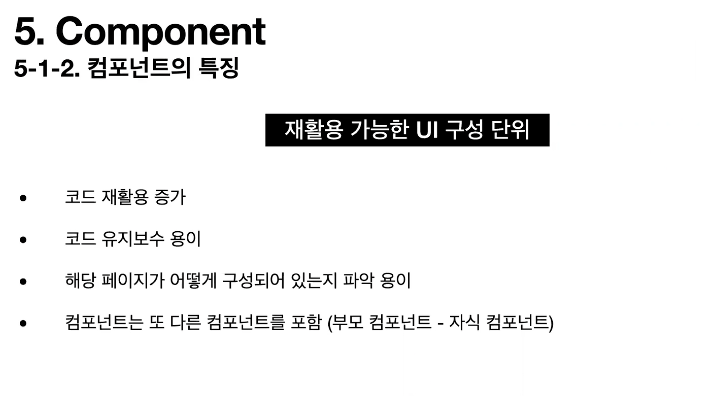 컴포넌트 = 재사용가능하고 독립적으로 움직일 수 있는 하나의 모듈