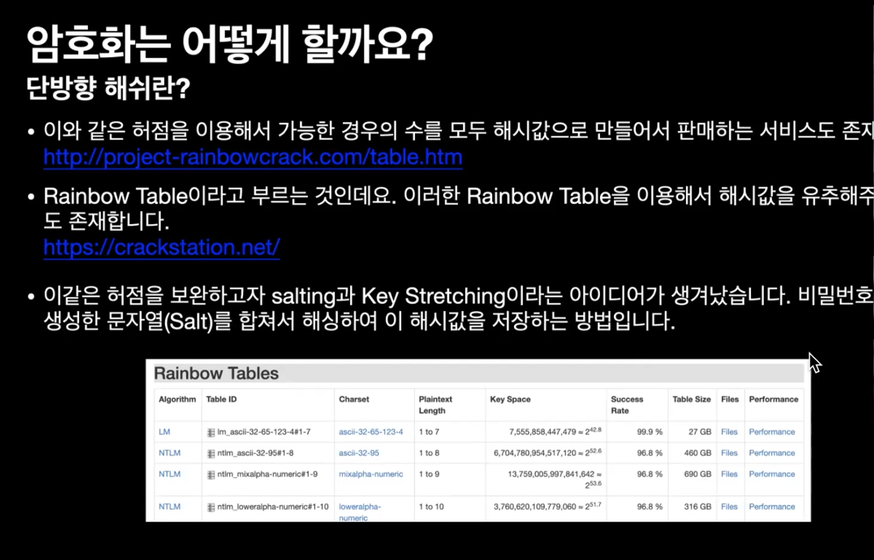 그걸 데이터화 시킨게 레인보우 테이블이다.