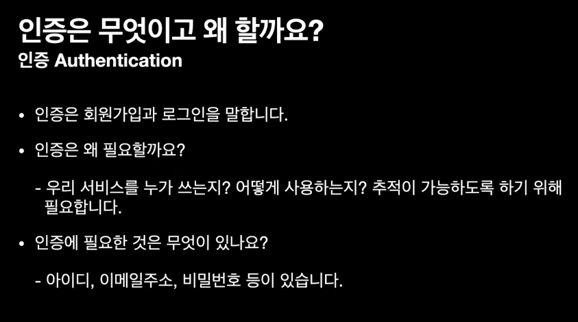 인증에 필요한건 아이디, 이메일주소, 비밀번호등이 있다.