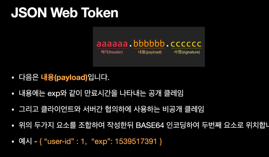 1. 로그인한 사용자에 대한 정보 (유저아이디 1번인 김xx씨가 로그인한거다 라는 내용을 이 페이로드에 담는다.)