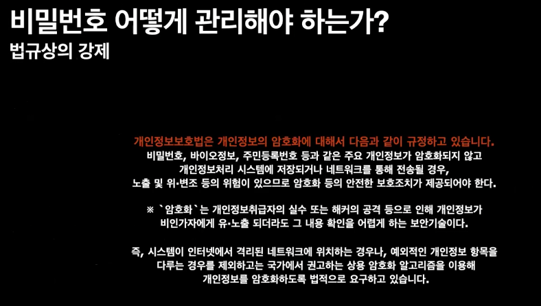 그중에서 비밀번호는 법규상의 강제(국가의 강제) 때문에 따로 관리해줘야 한다.