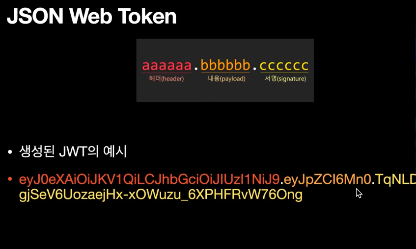 이거 들고와 하고 주는게 JWT(JSON Web Token)다.