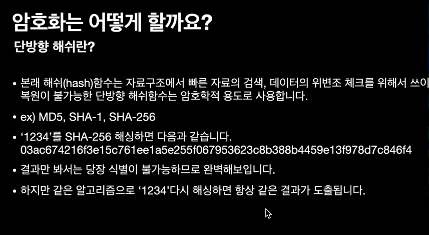 그래서 암호를 친 사람 본인만 알 수 있도록 관리를 해야한다.