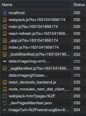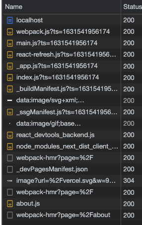 - (전부 CSR로 할 땐 js를 한 번에 다운로드 받습니다. 그래서 about.js를 추가적으로 다운받지 않습니다. 서버에서 추가적으로 about.js를 다운받는건 SSR이후 CSR을 하기 위해서입니다.)